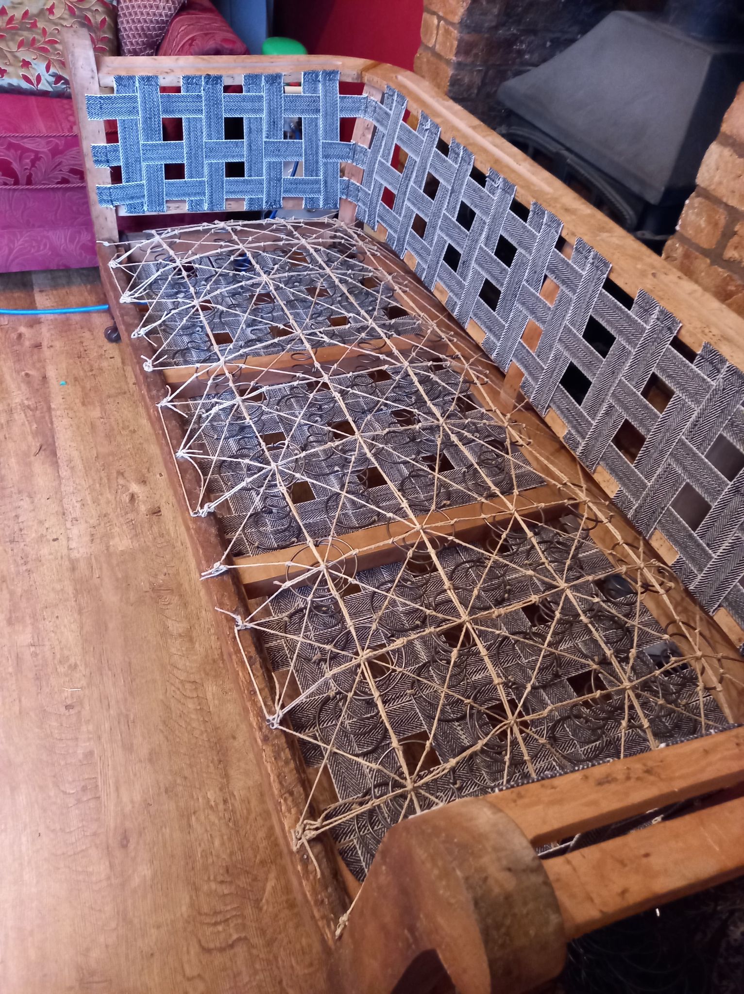 Once the frame was sound I selected a high quality British made black and white herringbone webbing to establish a
