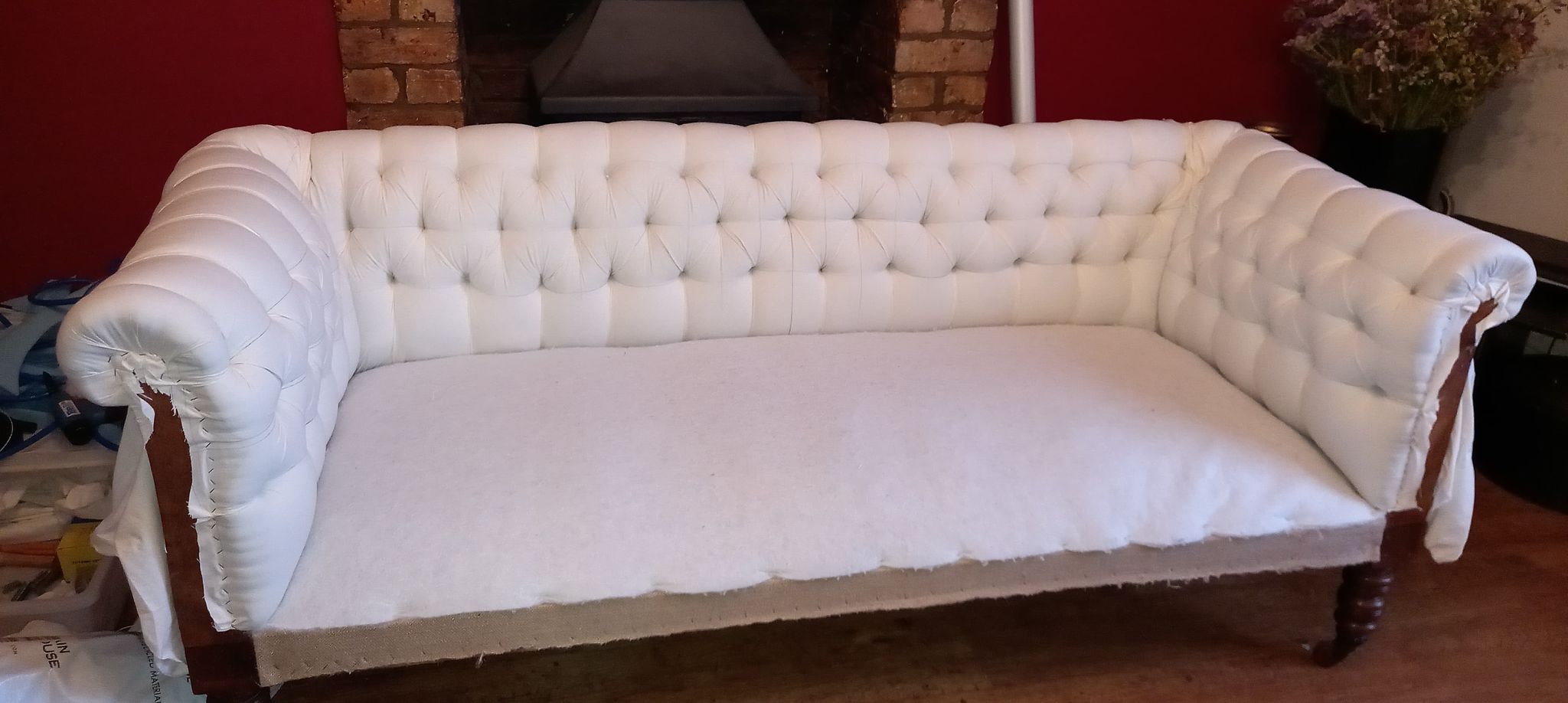 I then added the following layers; hessian, spring insulator, stuffing, calico and finally fabric. On this occasion my